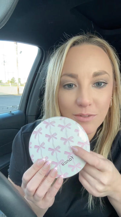 Taylor is our largest compact mirror with a wide 5-inch view, letting you see your whole face at once—no more squinting at just your eyebrow or lips. Mismatched eyeliner wings are so not the vibe!